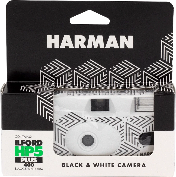 Egyszerűen és azonnal használható, 27 kockás Ilford HP5 fekete-fehér filmmel töltött egyszerhasználatos fényképezőgép